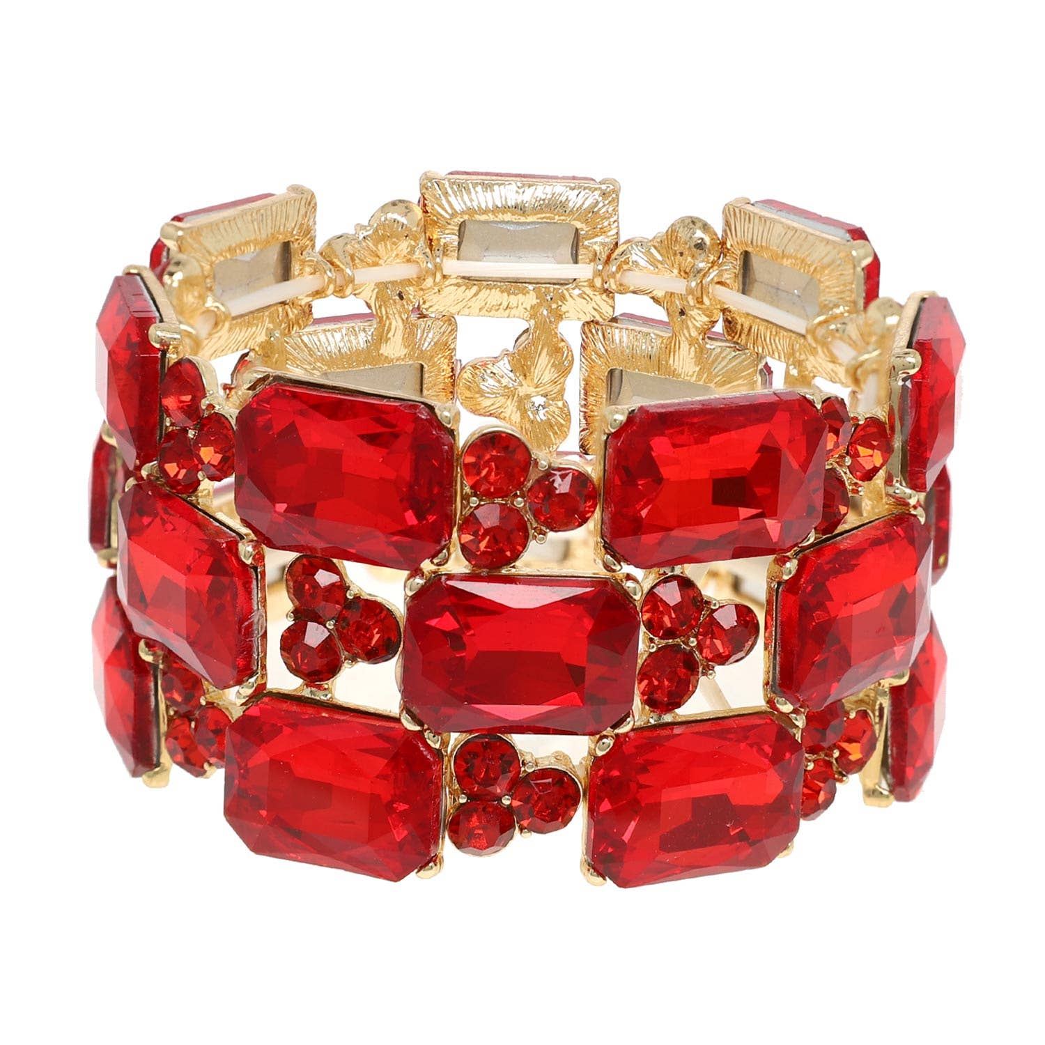 3-Row Rectangle Cut Crystal Gem Cluster Bracelet: Silver Crystal