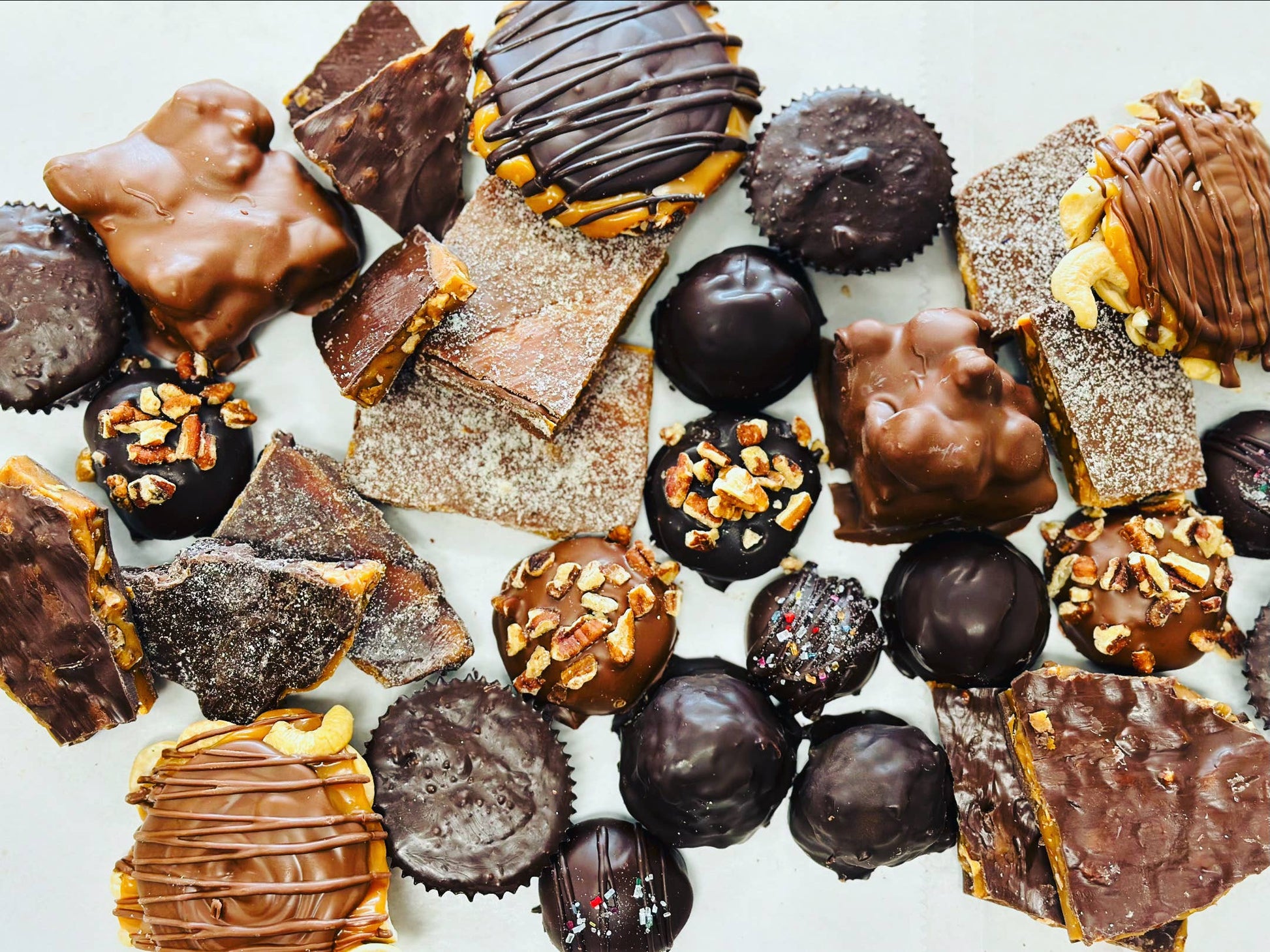 A smaller version of our large assorted sampler. Each 4pc box is handmade fresh in store. Included 1pc each of our salted caramels, buckeyes, dunes, and classic pecan turtles. Packaged in a gold gift box with bow. Great for baskets, gifts or that special someone .
