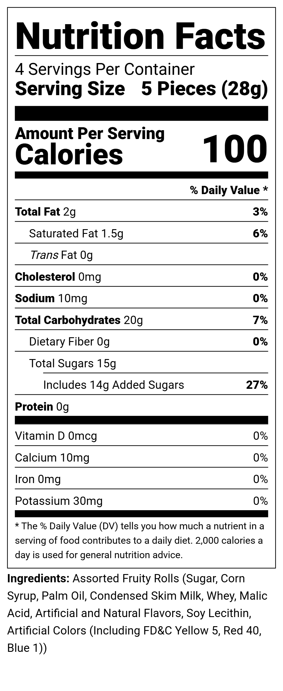 These Assorted Fruity Rolls pack a punch of fun with every bite! Enjoy the tangy flavor of freeze dried fruits without the mess! If you're lookin' for a snack that's out of this world, look no further.