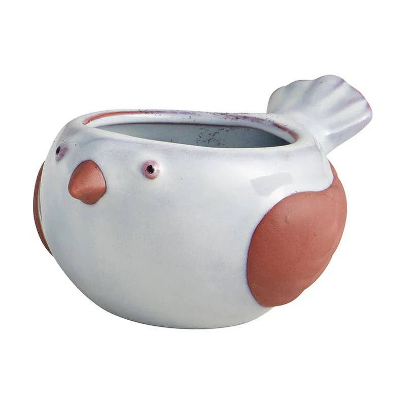 This charming ceramic Bird Planter, measuring approximately 2 1/2" x 4 1/2", offers a delightful way to showcase small plants. Its compact size fits perfectly on desks, shelves, or windowsills, while the carefully crafted design adds a touch of whimsy and elegance to any space. Ideal for succulents or petite greenery, it combines artistry and functionality for a subtle, nature-inspired accent.