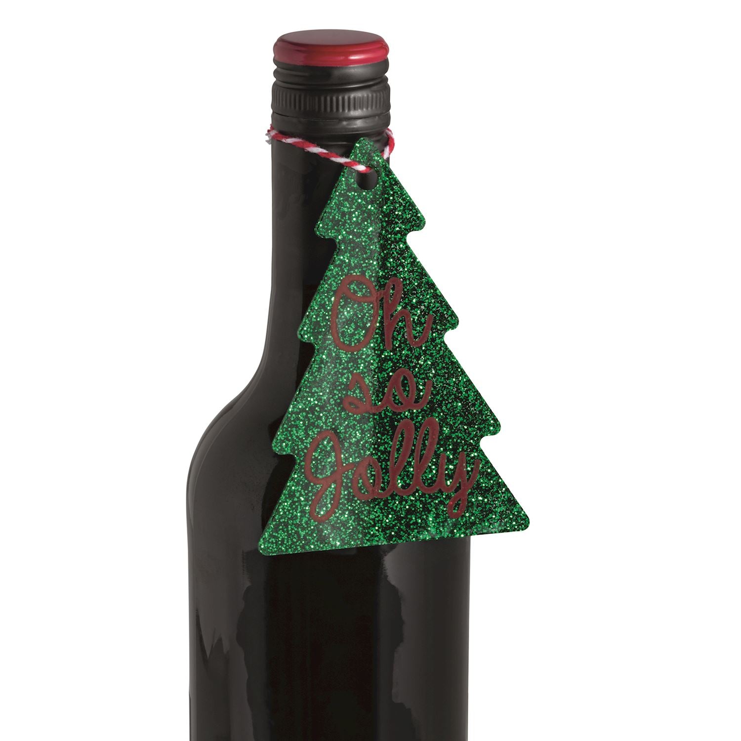 2-piece set. Embroidered grosgrain bow bottle topper comes with figural acrylic gift tag.