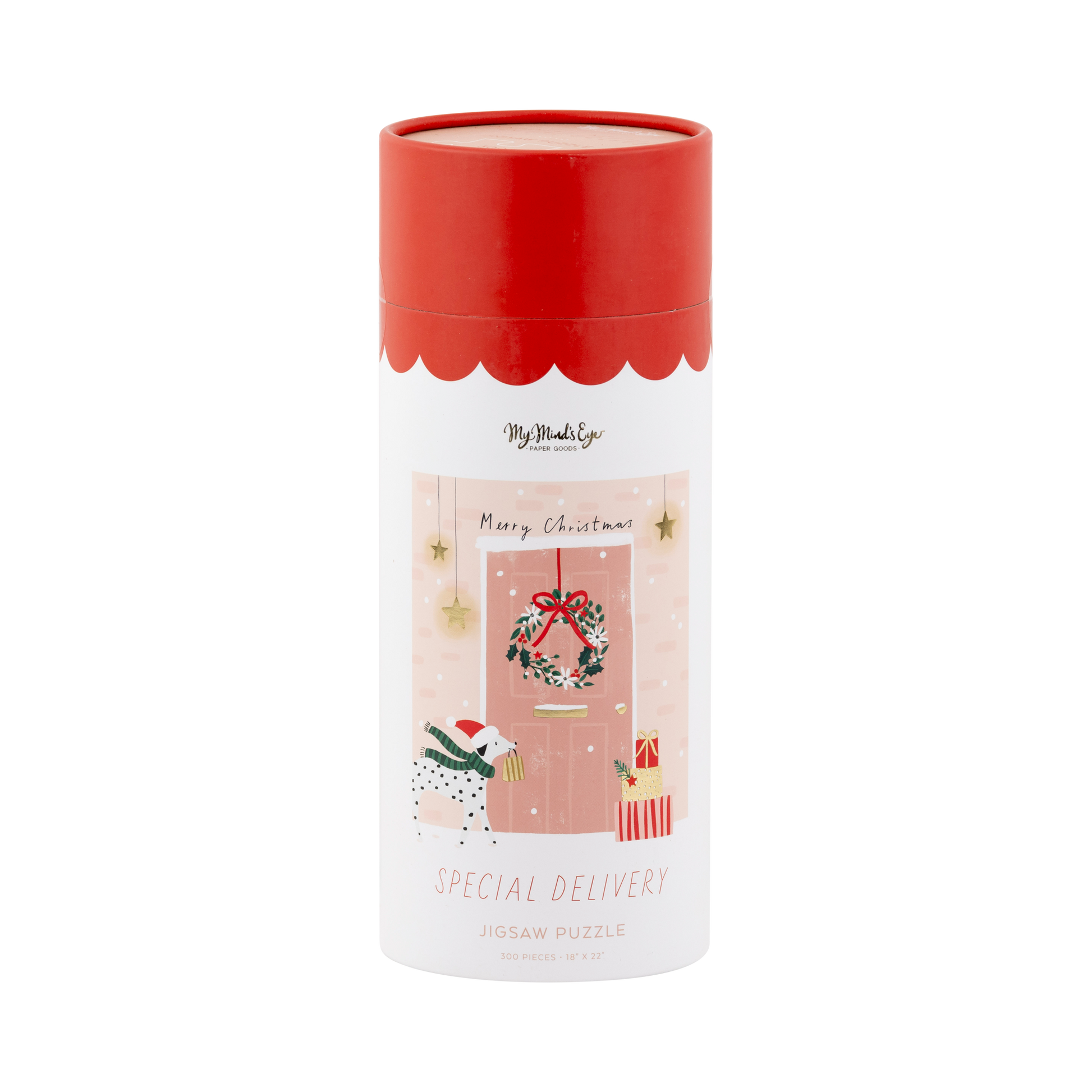 Delightful holiday puzzle features a special delivery from an adorable pup. A perfect gift for any dog lover. Get into the festive spirit with this playful Christmas puzzle!