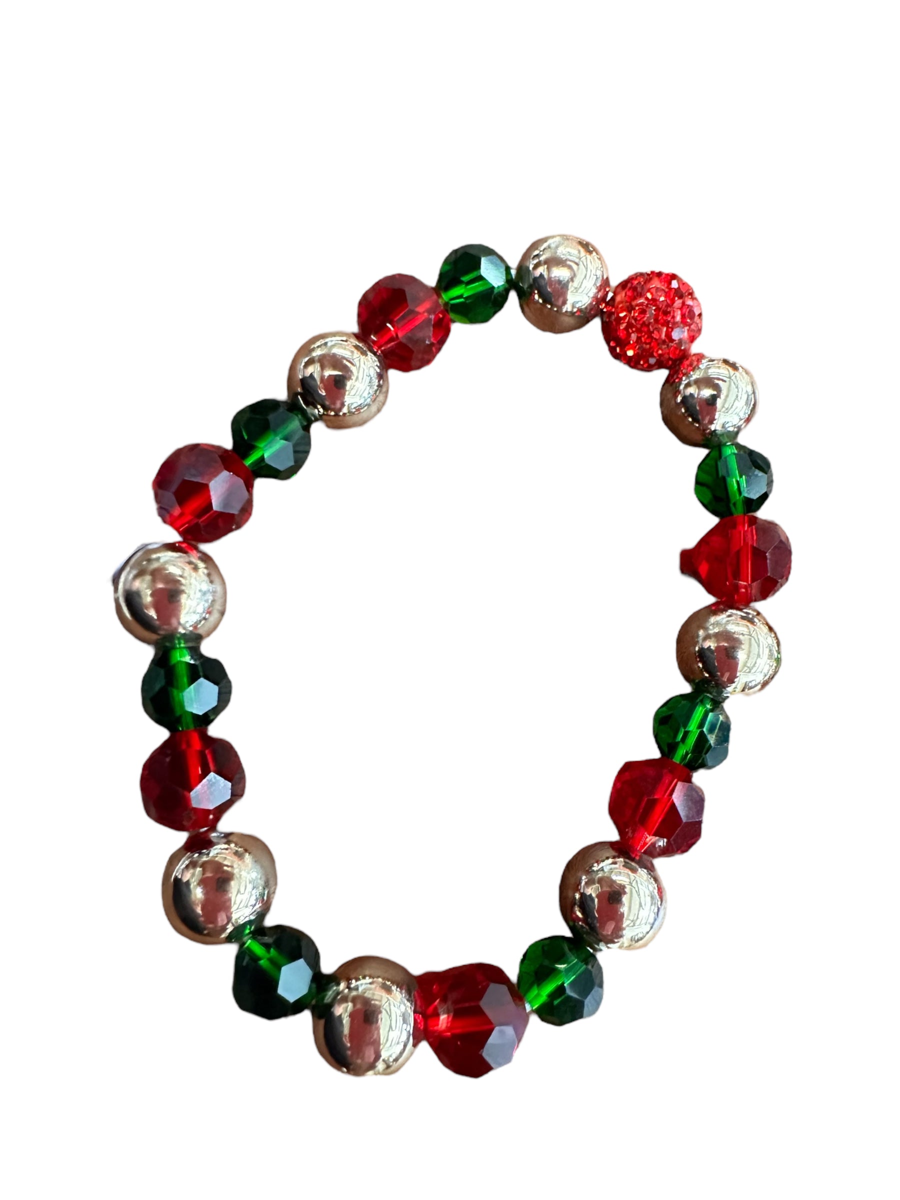 1. This stretch bracelet with red, green and gold beads is a must for Christmas festivities.