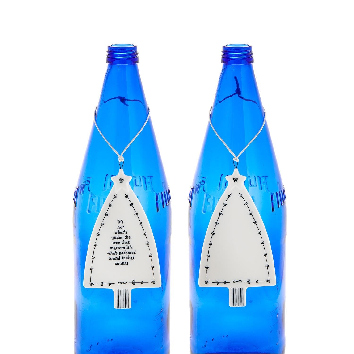 Choose from three elegant designs of this white ceramic Christmas tree hanging ornament, each featuring a heartfelt holiday sentiment. Perfect for tying onto gifts, hanging from a bottle of wine, or gifting on its own, this ornament adds a sophisticated and festive touch to your holiday celebrations. Its versatile style makes it an ideal accent for any gifting occasion, enhancing the presentation with meaningful charm.