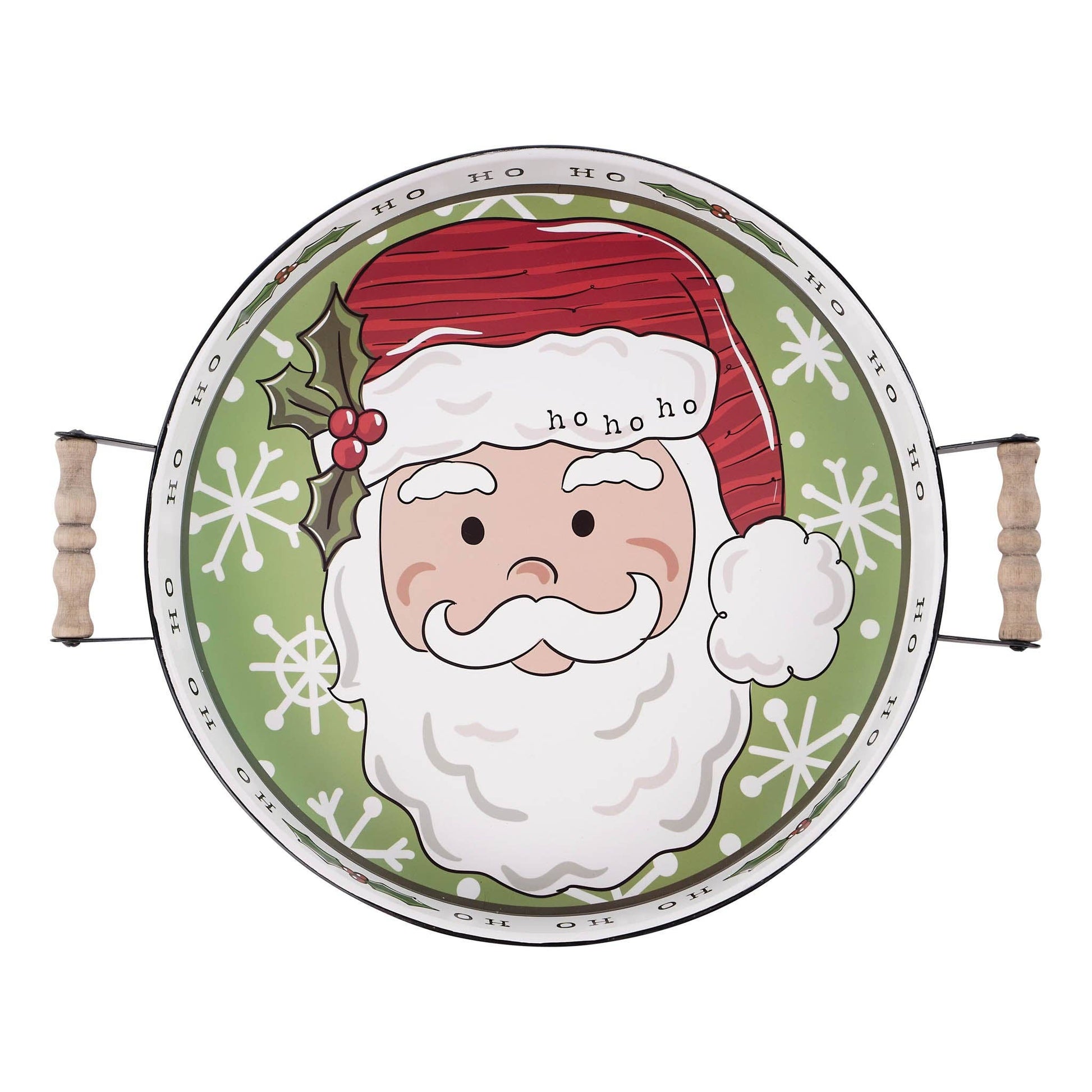 Spread holiday joy with the Classic Santa Ho Ho Ho Enamel Tray. Featuring a playful Santa with his signature "Ho Ho Ho" and festive snowflakes, this cheerful tray adds a jolly touch to your seasonal decor. Perfect for serving, gifting, or just spreading some Christmas cheer!