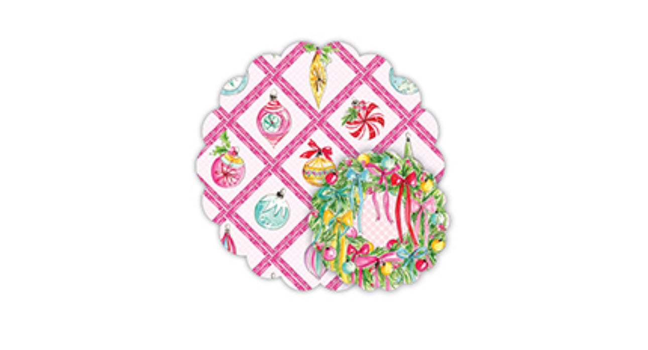 Doily Set Handpainted Ornaments in Pink Interlocking Bamboo