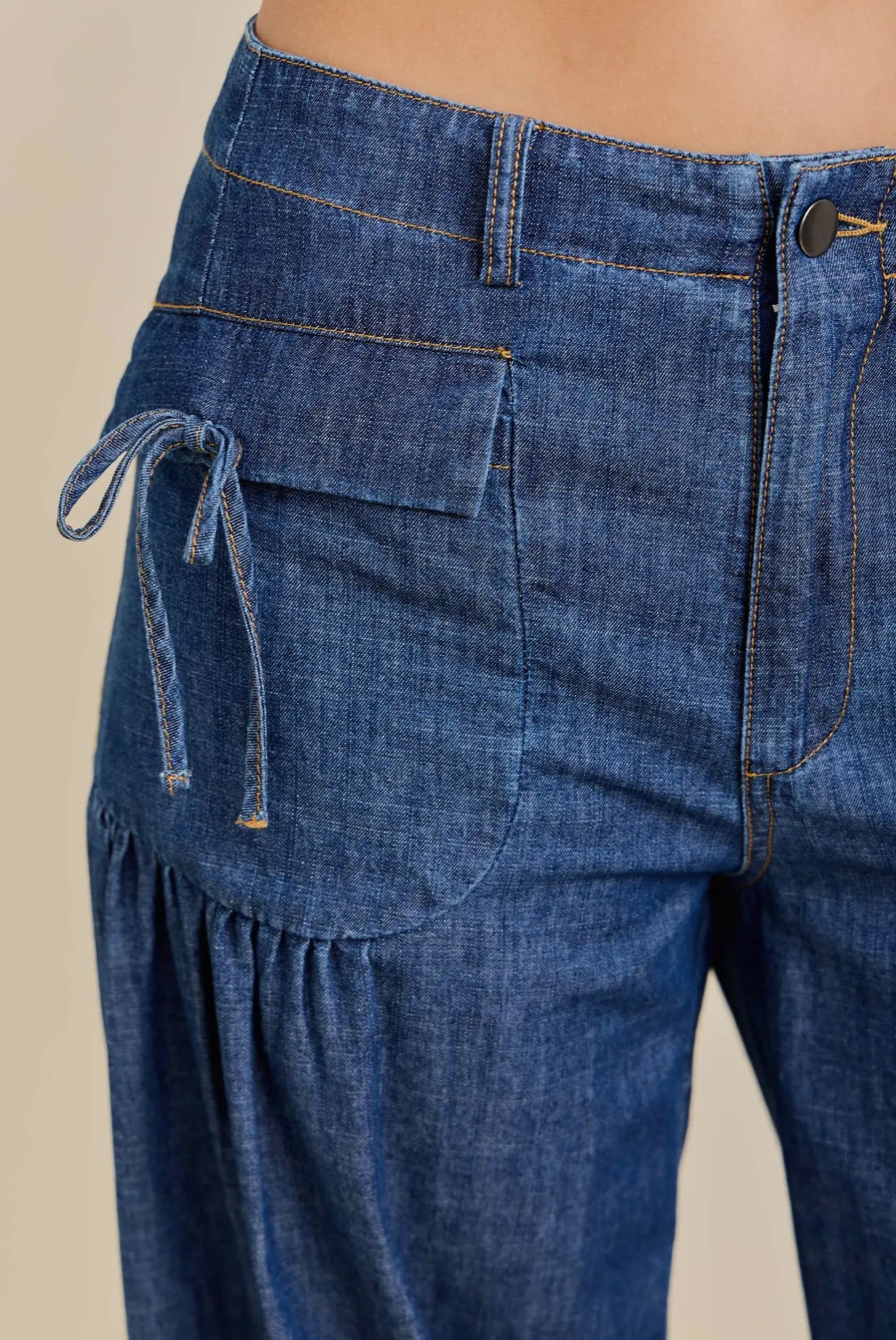 Revamp your wardrobe with our versatile Dual-Style Wide-Leg Cinched Jogger! Made with a blend of 90% cotton and 10% Tercel, these denim pants offer both style and comfort. With ribbon bow pocket detailing and the ability to switch between wide-leg and cinched jogger styles, you'll stand out in any setting.