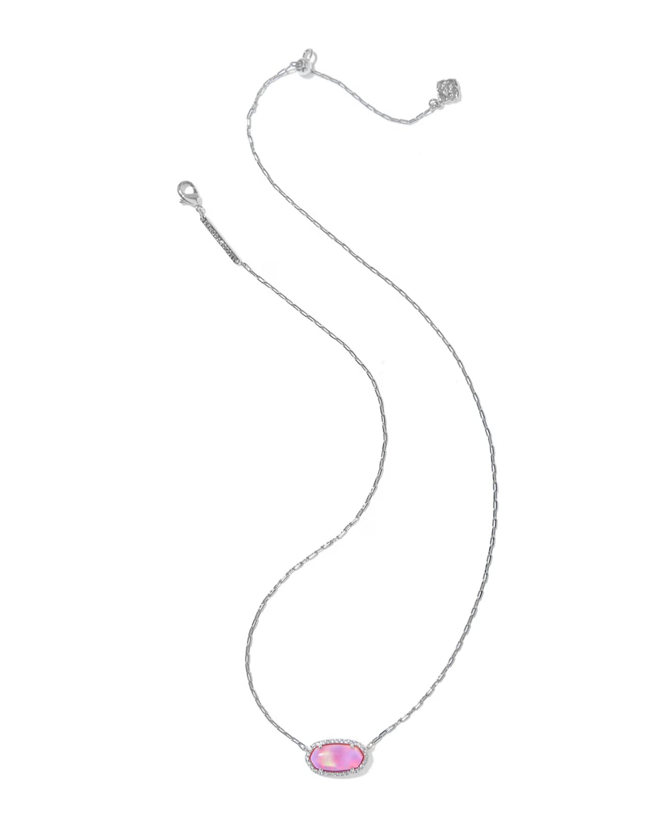 Elisa Pave Frame Pink Opalescent Resin Short Pendant Necklace | Kendra Scott