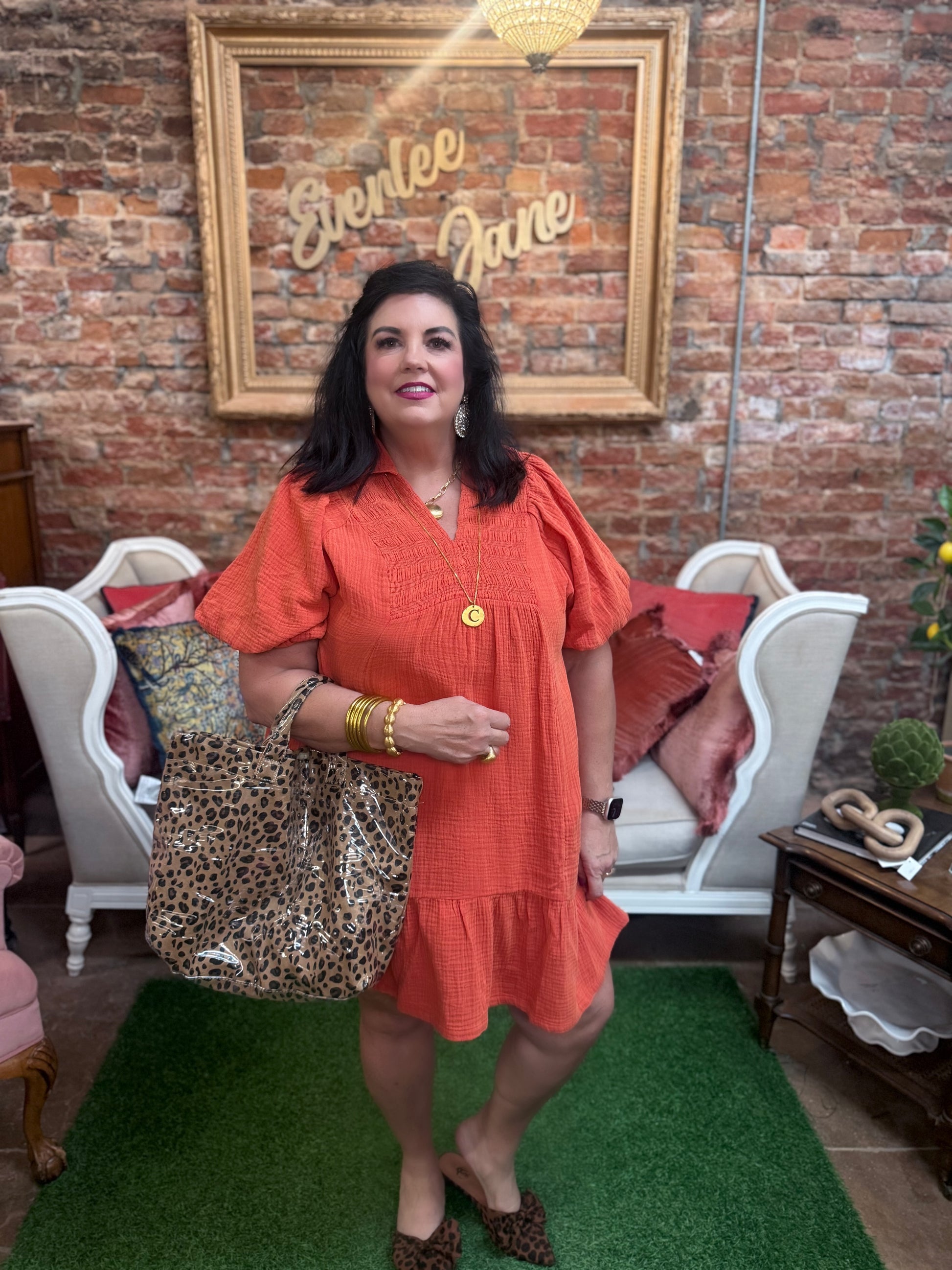 The Ember Mineral Wash Babydoll Dress offers a beautiful, lightweight design crafted from 100% cotton for breathability and comfort. Its flowy silhouette enhances ease of movement, while the soft pumpkin orange color adds a subtle yet captivating touch. Perfect for warm days, this dress balances style and comfort expertly.