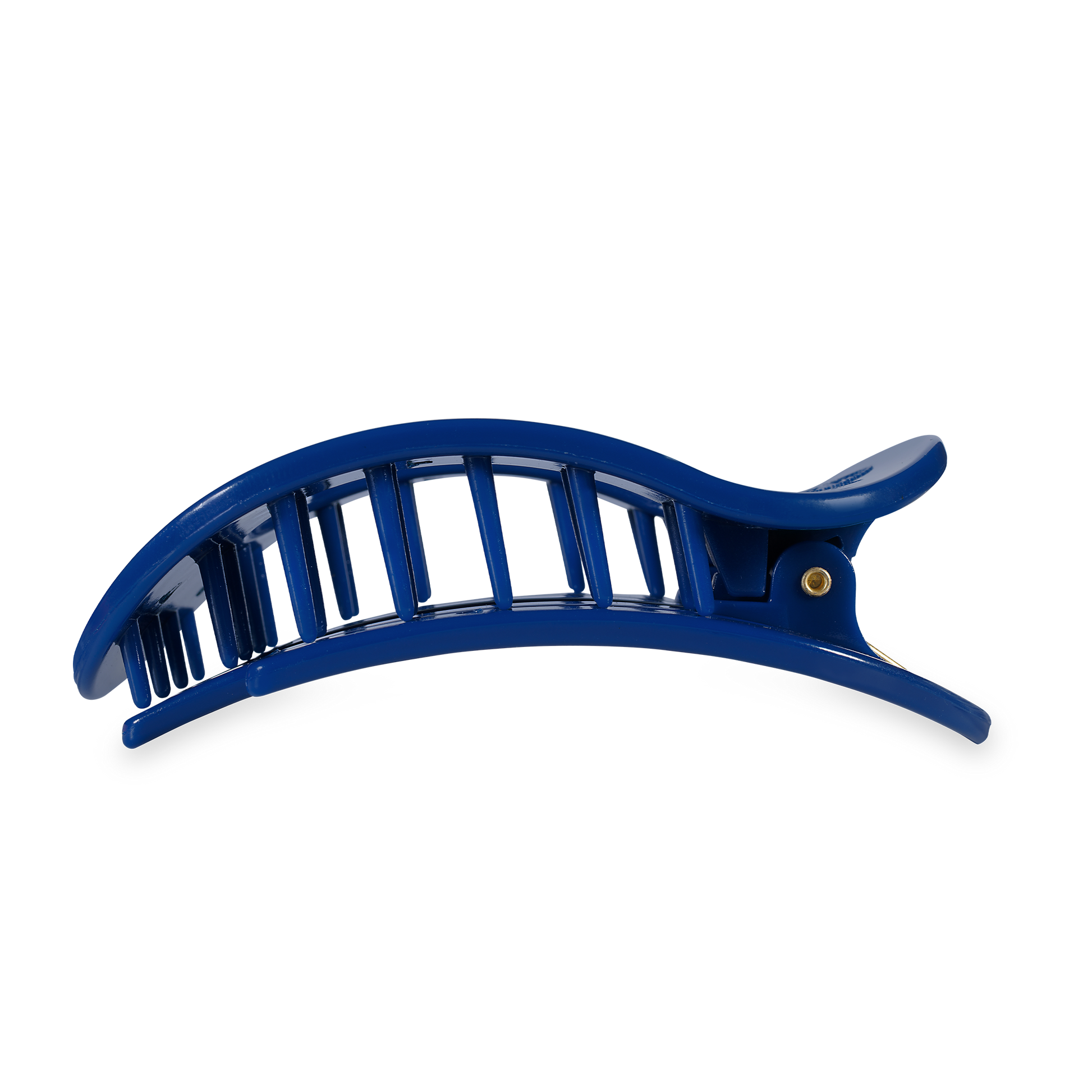 Lay flat and relax with the new TELETIES x MLB®, Texas Rangers Flat Round Hair Clip in Navy. This hair clip is designed to allow you to lay back flat, do yoga, or sit comfortably in a seat with a headrest, and it is made with the same material that is nearly unbreakable. Lay down flat with comfort Bendable teeth for a secure yet gentle hold Lightweight, durable, and suitable for all hair types Perfect for all-day wear—from sunup to sundown This is an officially licensed MLB® product. Sold as an individual unit. The large size is great for thick hair. The large size is 4.25 inches long. The medium is 3.75 inches long. The small is 3.25 long.
