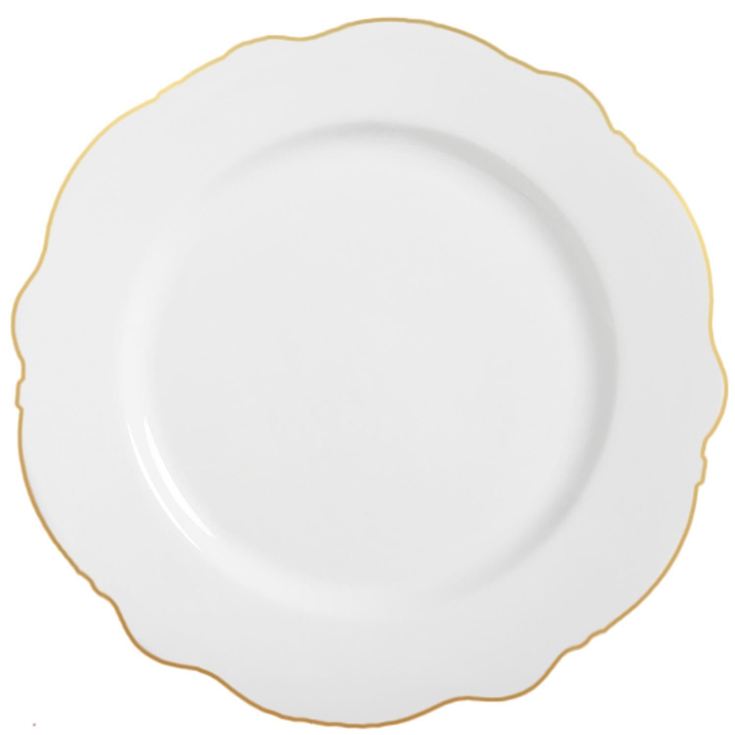 Elevate your dining experience with our Gold Scalloped Rim Appetizer Plate! Designed to hold perfectly trimmed scallops, this 6 in x 6 in plate adds a touch of elegance to any gathering. Impress your guests with its beautiful gold scalloped rim and elevate your appetizers to the next level.