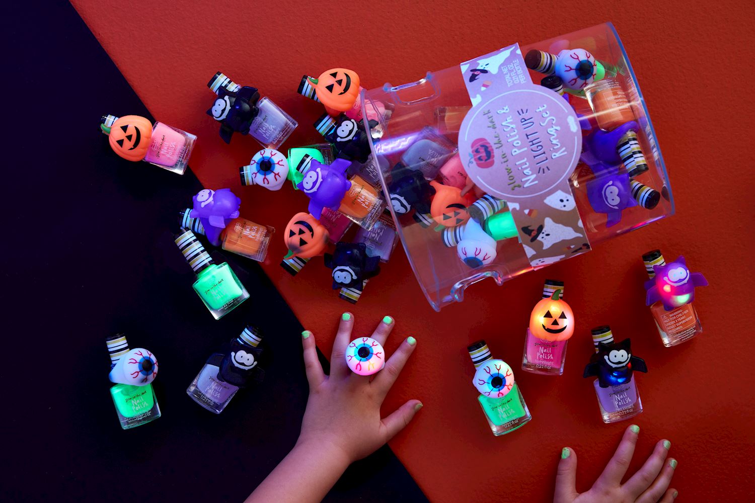 This Halloween Nail Polish & Ring Set features water-based, non-toxic glow-in-the-dark nail polish, ensuring safe and vibrant fun for all ages. Each bottle includes an attached LED light-up rubber ring, adding an interactive and festive touch perfect for boo baskets and Halloween celebrations. Enjoy a safe, playful way to brighten your spooky season with this expertly crafted set.
