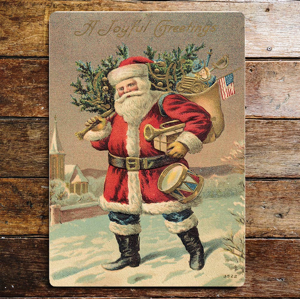 Joyful greetings Santa Christmas - Metal Wall Sign