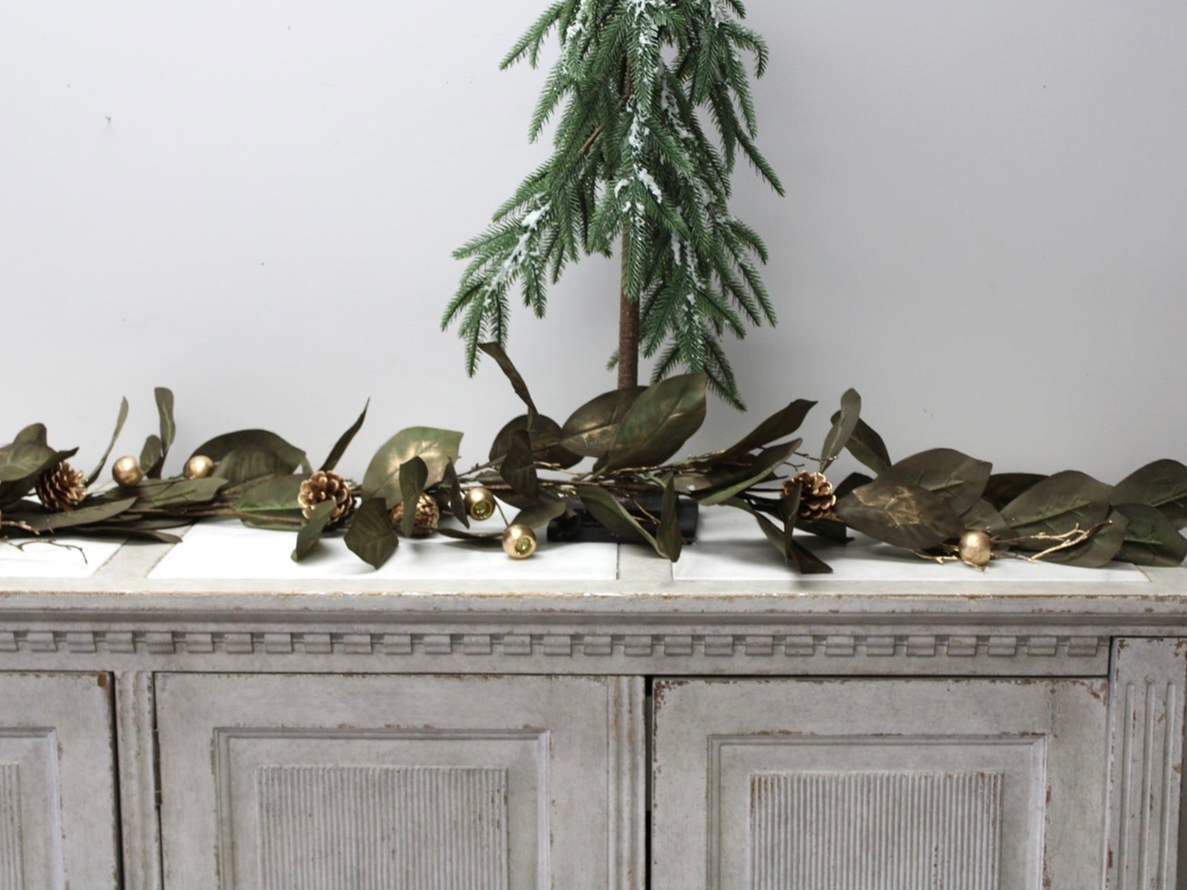60" Magnolia Leaf Garland with Gold Brushed Pinecones