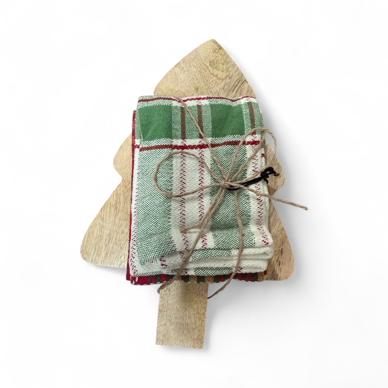 Upgrade your cooking game with our Mango Wood Cutting Board and Dish Cloth set! Made from sturdy mango wood, this board is perfect for slicing and dicing. Plus, it comes with 4 high-quality dish towels and a festive Christmas tree design. Experience the joy of cooking with this must-have kitchen essential.