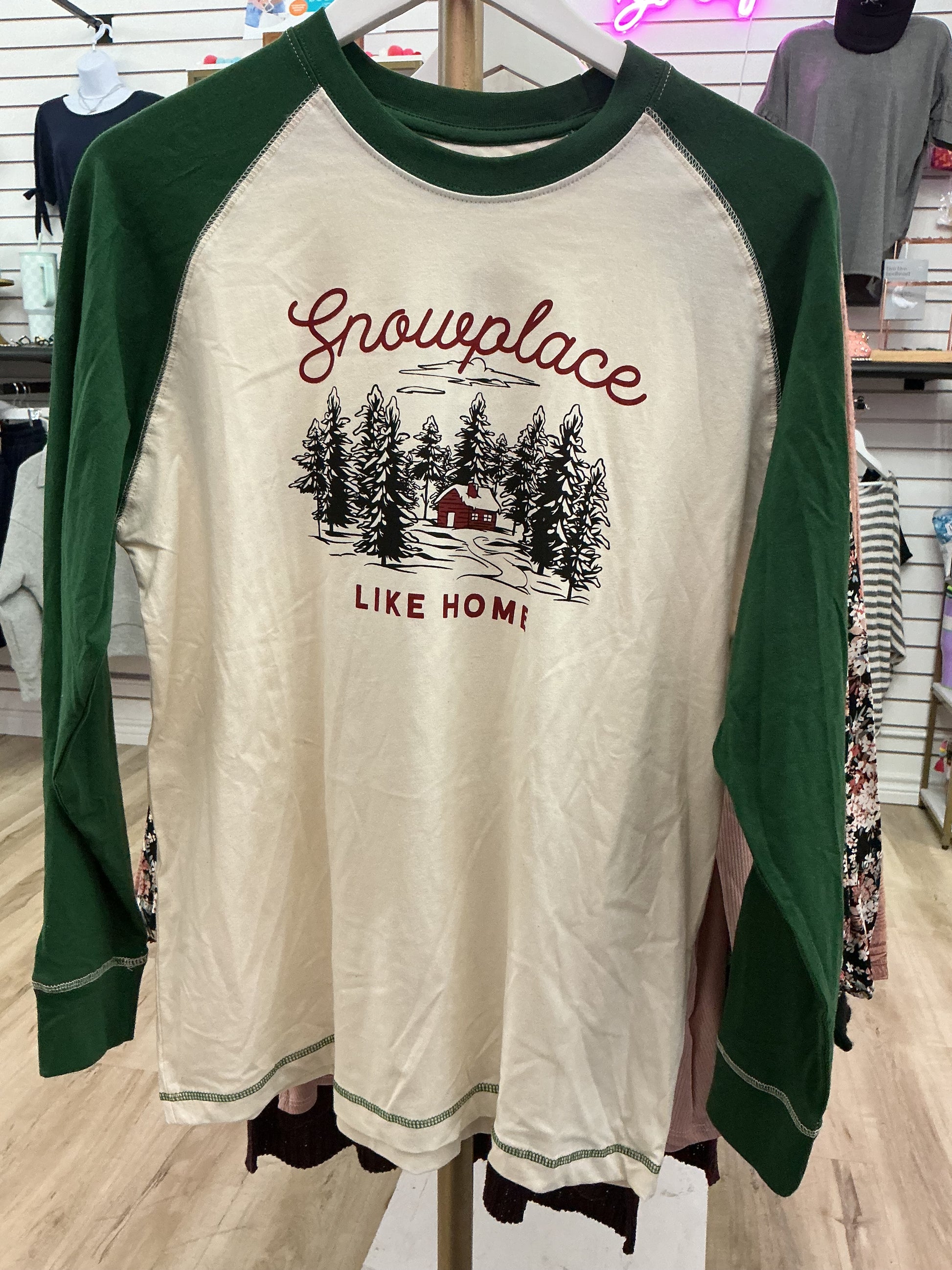 This men's baseball tee features a unique design with the phrase "snow place like home". Made with high-quality materials, this shirt is perfect for any winter holiday event. Show off your festive spirit and stay comfortable at the same time.n