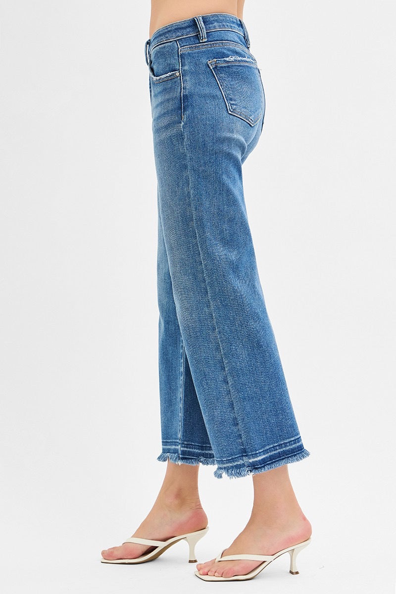 Love your curves in our Mid Rise Crop Wide Jeans! Crafted from medium wash denim, these midrise jeans are designed to accentuate your shape and provide a comfortable fit. Perfect for any occasion, these jeans will quickly become a staple in your wardrobe. Get ready to look and feel confident in our Mid Rise Crop Wide Jeans!
