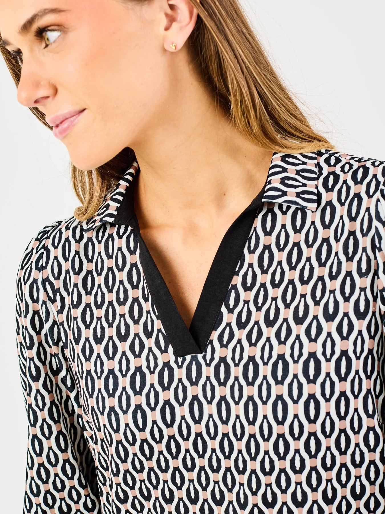 - Long sleeves with subtle puff