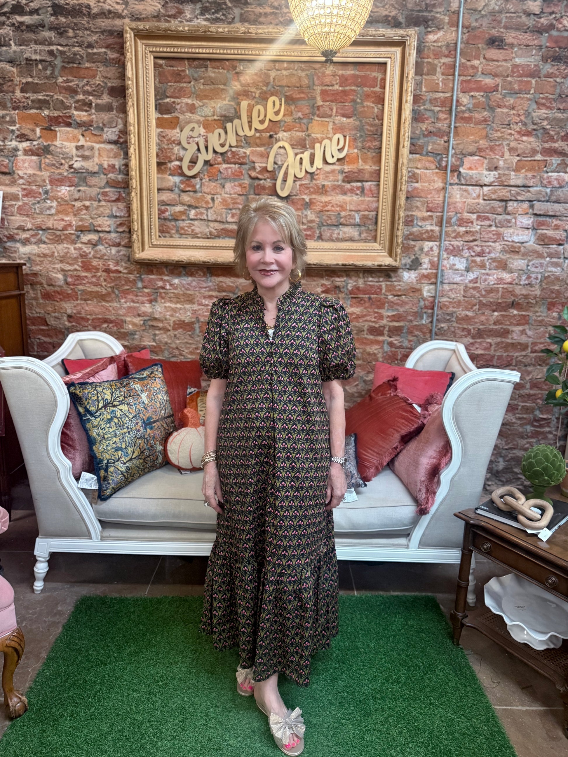 Embrace the elegance of fall with the Steph Floral Print Ruffle Hem Midi Dress. Crafted from lightweight woven cotton, this dress features delicate shoulder pleats, puff sleeves, and a flowing ruffle hem that enhance its graceful silhouette. Designed with practicality in mind, it includes side pockets and a fully lined, non-sheer fabric for comfortable coverage. Perfect for seasonal occasions, this dress combines subtle floral charm with expert tailoring for a refined, timeless look.