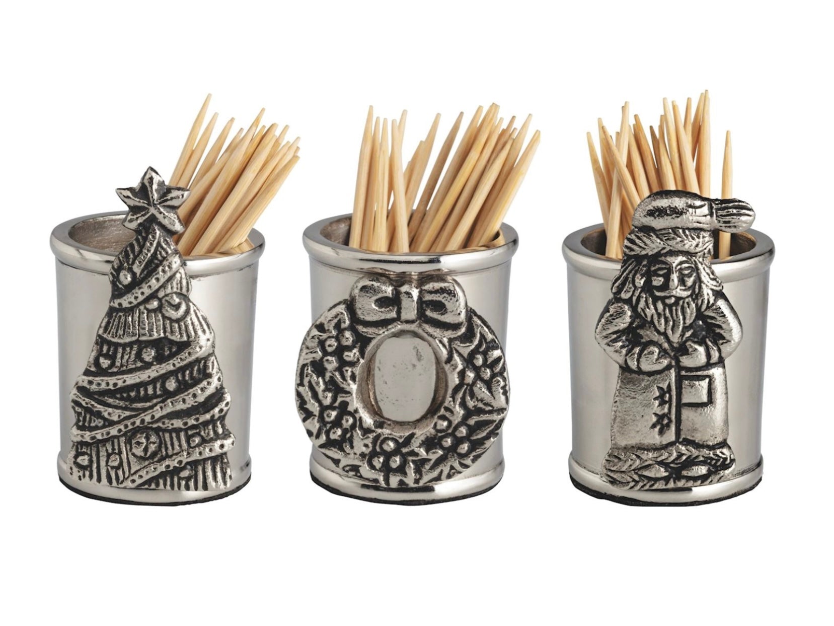 2-piece set. Cast aluminum toothpick caddy comes with pack of wooden toothpicks.