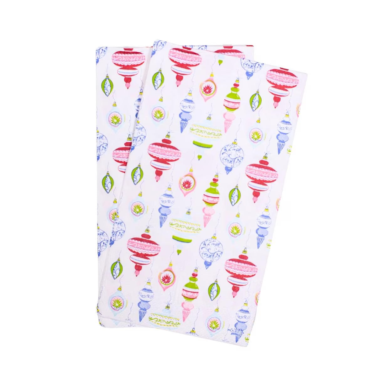 Whimsical Wonders Guest Napkins feature a cheerful white background accented with vibrant multi-color designs, measuring 4.25 by 7.75 inches for ideal guest use. Each pack includes 16 napkins, thoughtfully sized and styled to complement your holiday décor. Perfect for Christmas gatherings, they combine practicality with festive charm, enhancing your table setting with ease and elegance.