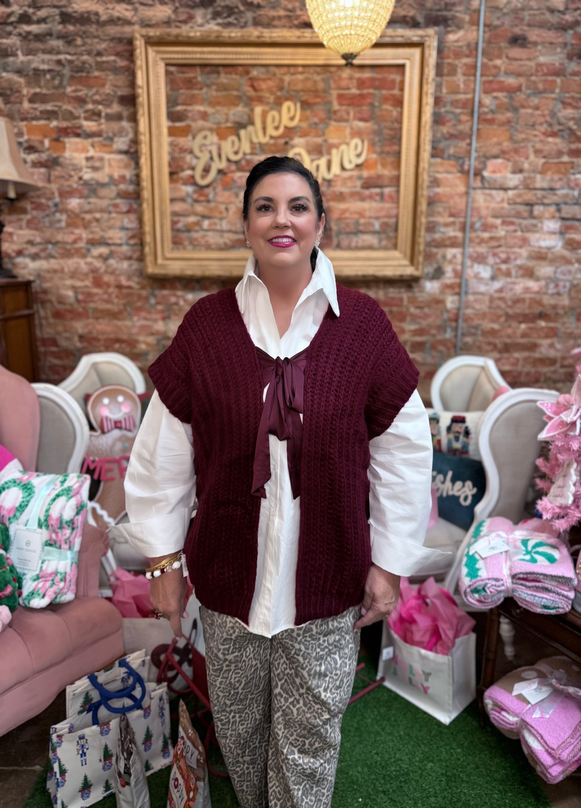 Wrap yourself in the luxurious comfort of our Wine Ribbon Sweater! Made with 100% Acrylic and a contrasting 100% Polyester, this sweater is not only soft and cozy, but also stylish. The perfect addition to any wardrobe, feel confidently chic and warm in our Wine Ribbon Sweater.